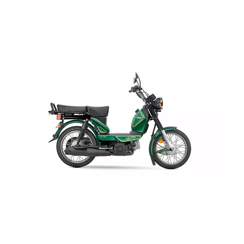 The TVS XL 100 HD KS is a heavy-duty moped with a BS-VI compliant 99.7cc, 4-stroke engine that uses EcoThrust Fuel Injection technology for better mileage.